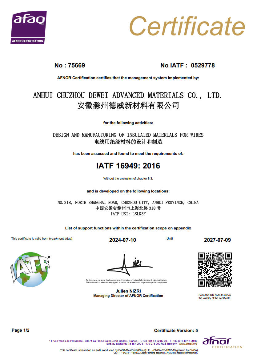 滁州德威 IATF 16949 證書